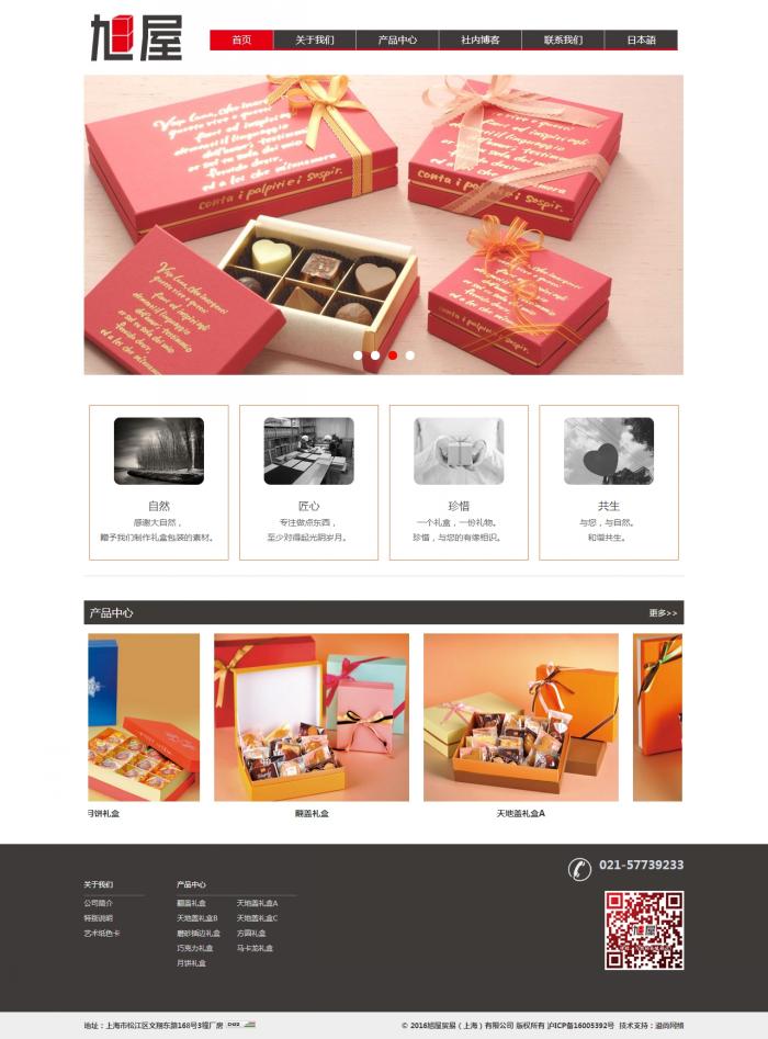 旭屋貿(mào)易(上海)有限公司是由株式會社旭屋全投資,于2012年成立在上海的一家從事禮盒包裝業(yè)務(wù)的公司。上海公司自成立以來,產(chǎn)品受到國內(nèi)外諸多客戶的青睞。我們一方面向市場推出公司內(nèi)部自創(chuàng)的產(chǎn)品,一方面接受客戶的來稿來樣定制。我們堅(jiān)持品質(zhì)至上,為客戶提供優(yōu)良、安心的包裝;堅(jiān)持與包裝業(yè)界的優(yōu)秀同仁合作共贏,堅(jiān)持與傳統(tǒng)媒體、新式媒體及其他業(yè)界的跨界合作,為創(chuàng)造更美好的包裝世界而貢獻(xiàn)自力。