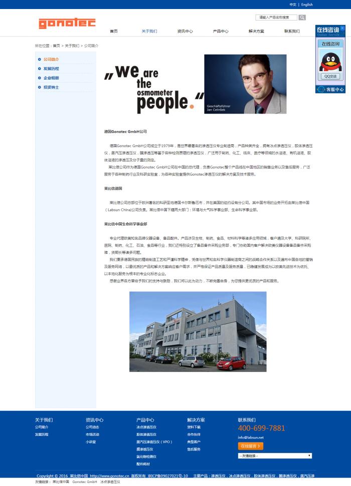 德國Gonotec GmbH公司成立于1979年,是世界最著名的滲透壓儀專業(yè)制造商,產(chǎn)品種類齊全,擁有冰點(diǎn)滲透壓儀,膠體滲透壓儀,蒸汽壓滲透壓儀,膜滲透壓等基于各種檢測原理的滲透壓儀,廣泛用于制藥、化工、臨床、醫(yī)療等領(lǐng)域的水溶液、有機(jī)溶液、膠體溶液的滲透壓及分子量的測定。