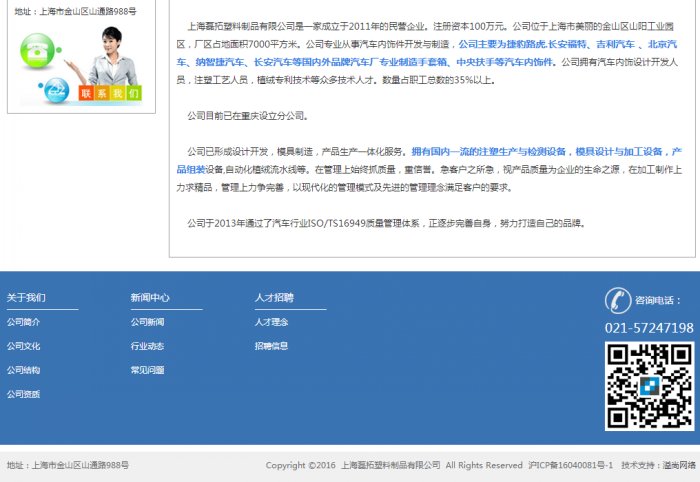 上海磊拓塑料制品有限公司是一家成立于2011年的民營(yíng)企業(yè)。注冊(cè)資本100萬元。公司位于上海市美麗的金山區(qū)山陽工業(yè)園區(qū),廠區(qū)占地面積7000平方米。公司專業(yè)從事汽車內(nèi)飾件開發(fā)與制造,公司主要為捷豹路虎.長(zhǎng)安福特、吉利汽車 、北京汽車、納智捷汽車、長(zhǎng)安汽車等國(guó)內(nèi)外品牌汽車廠專業(yè)制造手套箱、中央扶手等汽車內(nèi)飾件。公司擁有汽車內(nèi)飾設(shè)計(jì)開發(fā)人員,注塑工藝人員,植絨專利技術(shù)等眾多技術(shù)人才。