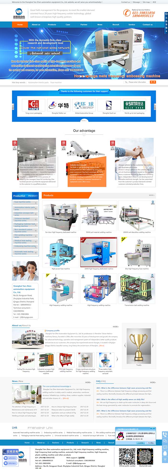 上海巖甄自動(dòng)化設(shè)備有限公司其前身是深圳臺(tái)資賀順機(jī)械廠,公司成立于2006年,歷經(jīng)十多年的成長(zhǎng)與發(fā)展,公司有先進(jìn)的技術(shù)、具有公司內(nèi)部的營(yíng)運(yùn)與管理體系,精益求精的產(chǎn)品服務(wù)于廣大客戶,公司歷經(jīng)幾次變遷,現(xiàn)位于風(fēng)景秀麗、歷史悠久的上海市青浦區(qū)朱家角古鎮(zhèn)。目前公司具有4000余面積的廠房,現(xiàn)有員工50多人,工程師4人,各類技工15人。本公司是國(guó)內(nèi)高頻機(jī)及自動(dòng)化設(shè)備研制廠家,集研發(fā),制造、服務(wù)的生產(chǎn)企業(yè)。擁有雄厚的技術(shù)力量、先進(jìn)的加工設(shè)備,多名工程師與員工團(tuán)隊(duì)。獨(dú)特的管理體制、完善的服務(wù)體系,公司嚴(yán)格執(zhí)行ISO9001質(zhì)量標(biāo)準(zhǔn)與國(guó)際CE認(rèn)證標(biāo)準(zhǔn)。
