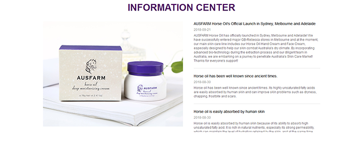 Ausfarm Horse Oil Skin Care Products have been launched into the market. By implementing a biological extraction technology of horse oil, the overall naturalness and purity of the horse oil itself will be preserved.