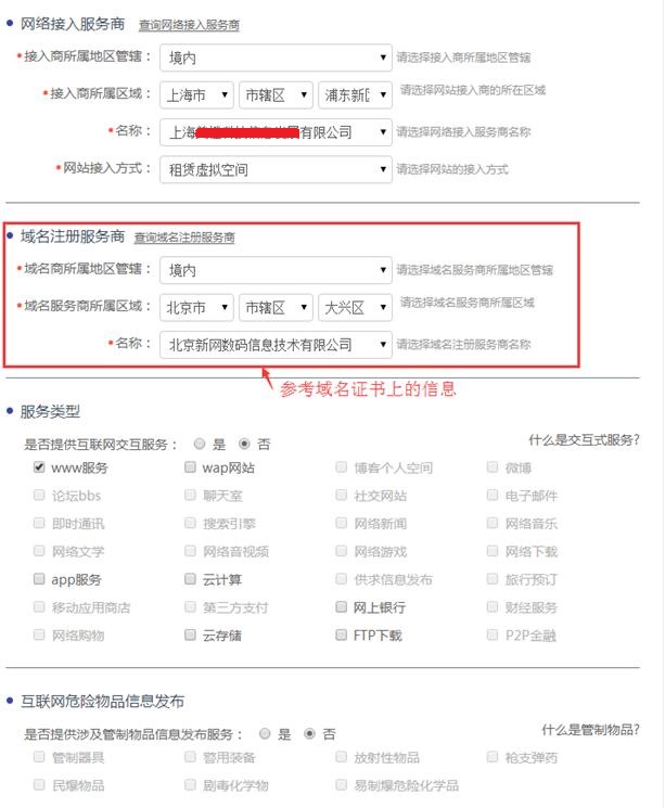 ⑤域名注冊服務(wù)商信息按照域名證書上的信息填寫