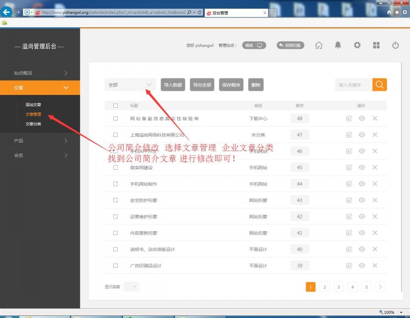 5.公司簡介修改,點(diǎn)擊文章管理,找到公司簡介文章,然后進(jìn)行修改即可