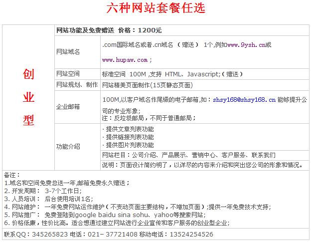 六種網(wǎng)站套餐網(wǎng)站價格表