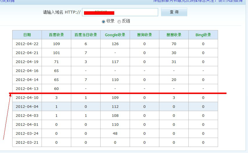 大家習慣于查詢對方的收錄量,貌似收錄數(shù)量越多越好,但是筆者認為,收錄要看長遠,看穩(wěn)定性,用一些查詢工具關注對方網(wǎng)站的收錄歷史記錄,對于收錄量跟常規(guī)網(wǎng)站類型不太協(xié)調的(例如對于企業(yè)網(wǎng)站收錄量數(shù)十萬)、快照浮動變化不穩(wěn)定(歷史收錄數(shù)據(jù)突升突降)情況要格外注意(有可能曾經(jīng)、或者將來被搜索引擎K過),下圖說明: